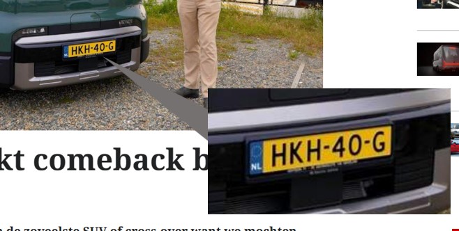 Bij terugkeer naar de site met de afbeelding viel pas het kwartje. Als je namelijk inzoomt op de afbeelding valt ineens op dat de kentekenplaat op deze Kia is geplakt.