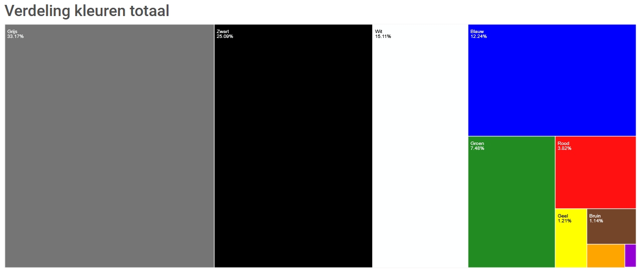 Rondom de jaarwisseling produceert Kenteken.tv al enkele jaren een aantal inzichten. Eentje daarvan zal begin 2026 weer verschijnen: kleurenoverzicht.